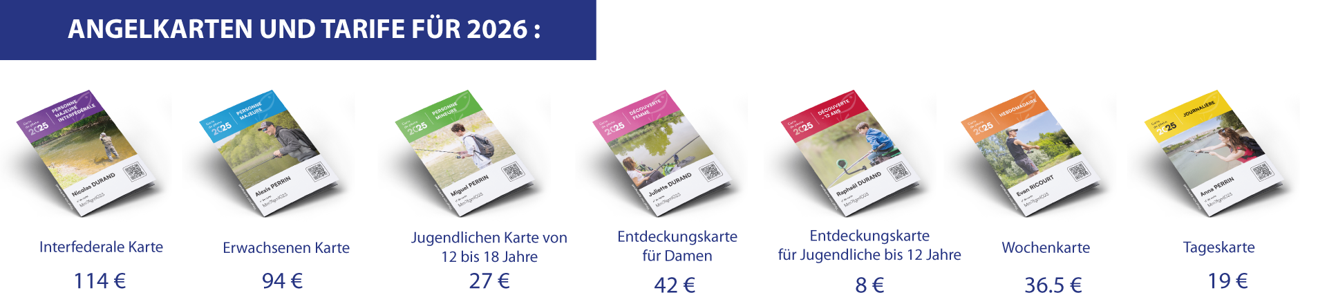 • Jugendlichen Karte : Älter als 12 und jünger als 18, Erlaubt in allen AAPPMAs die dem URNE, EHGO oder CHI, Gegenseitigkeitsabkommen